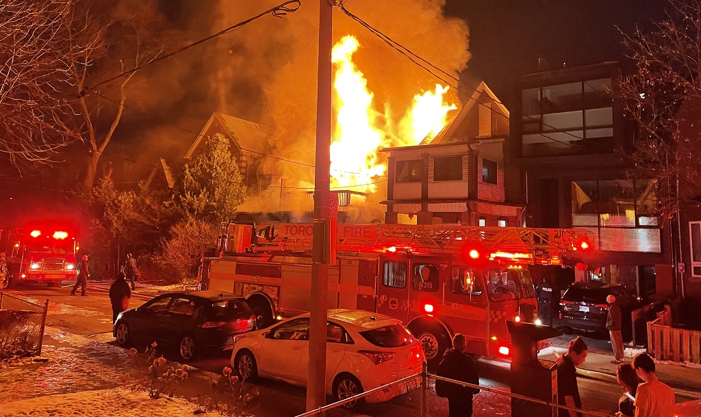 Firefighters worked to put out the fire from the outside and to stop the spread of the fire to adjacent buildings. Neighbouring homes were evacuated and a TTC bus was brought on site to provide shelter.