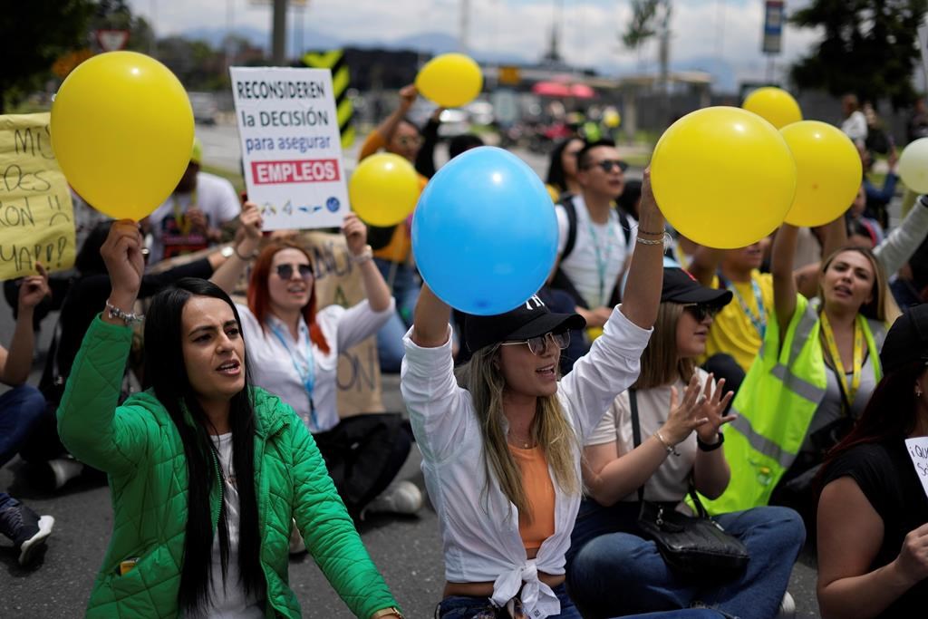 On Tuesday dozens of angry passengers protested outside Viva’s counters at the airports in Bogota and Medellin, where they briefly blocked access to the international departures terminal. A small number were moved to flights on other airlines.
