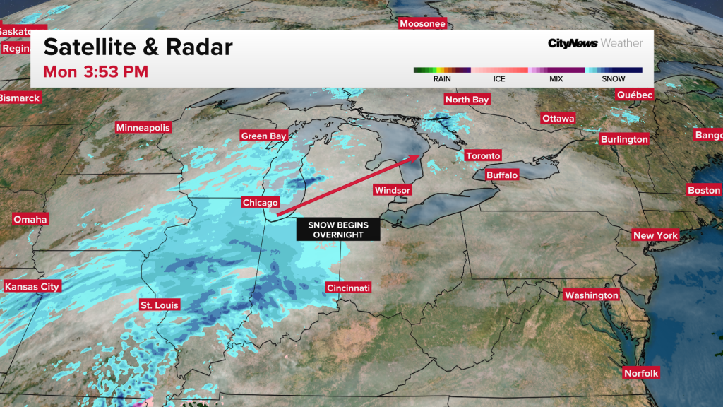 The system that brought the light blanket of snowfall for Toronto on Monday night is ramping up into a power Nor’Easter for Atlantic Canada.